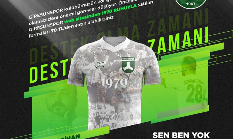 GİRESUNSPOR Kulübümüzün zor günlerinde taraftar olarak bizlere önemli görevler düşüyor , öncelikle GİRESUNSPOR web sitesinden 1970 RUHUYLA satılan formaları 70 TL’den satın alabilirsiniz.