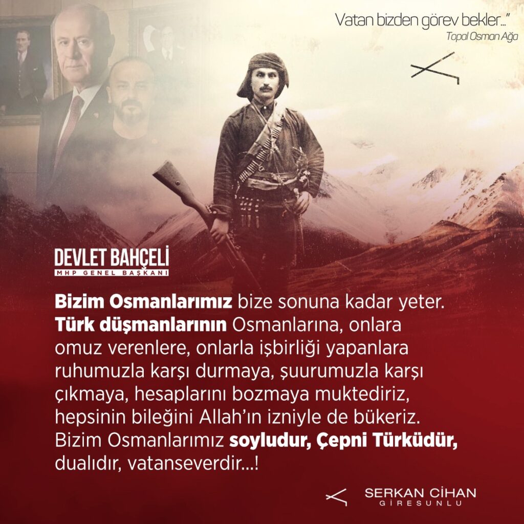 Türk düşmanlarının Osmanlarına, onlara omuz verenlere, onlarla işbirliği yapanlara ruhumuzla karşı durmaya, şuurumuzla karşı çıkmaya, hesaplarını bozmaya muktediriz, hepsinin bileğini Allah’ın izniyle de bükeriz.