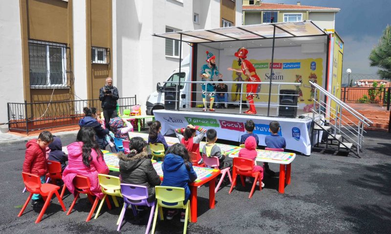 Açılır kapanır sahnesi ve sistemi bulunan gösteri aracı müzikal ve tiyatral etkinliklerle çocuklar Ramazan coşkusunu yaşıyor.