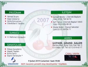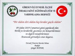 GİRESUN İLİ EYNESİL İLÇESİ İSHAKLI KÖYÜ EĞİTİM KÜLTÜR VE YARDIMLAŞMA DERNEĞİ BİRLİK VE BERABERLİK GECESİNE DAVETİYEMİZİ ALDIK