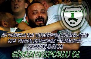 GİRESUNSPOR Başkanı olacak adam ve yönetim kurulunun tamamı önce ve sadece GİRESUNSPORLU olmak zorundadır! Bu özelliğin dışında sırasıyla ekonomisi düzgün futboldan anlayan camiada karşılığı olan sözü senet olan insanlarla oluşturulacak yönetim kuruluyla bu sezon ligde tutunmak ve önümüzdeki sezon şampiyon olmak zor değil ! Bu arada Aralık ayında bu özelliğe sahip olanların cebine en az 5 milyon tl koyması gerektiğinide hatırlatmakta fayda var , benden söylemesi ……..