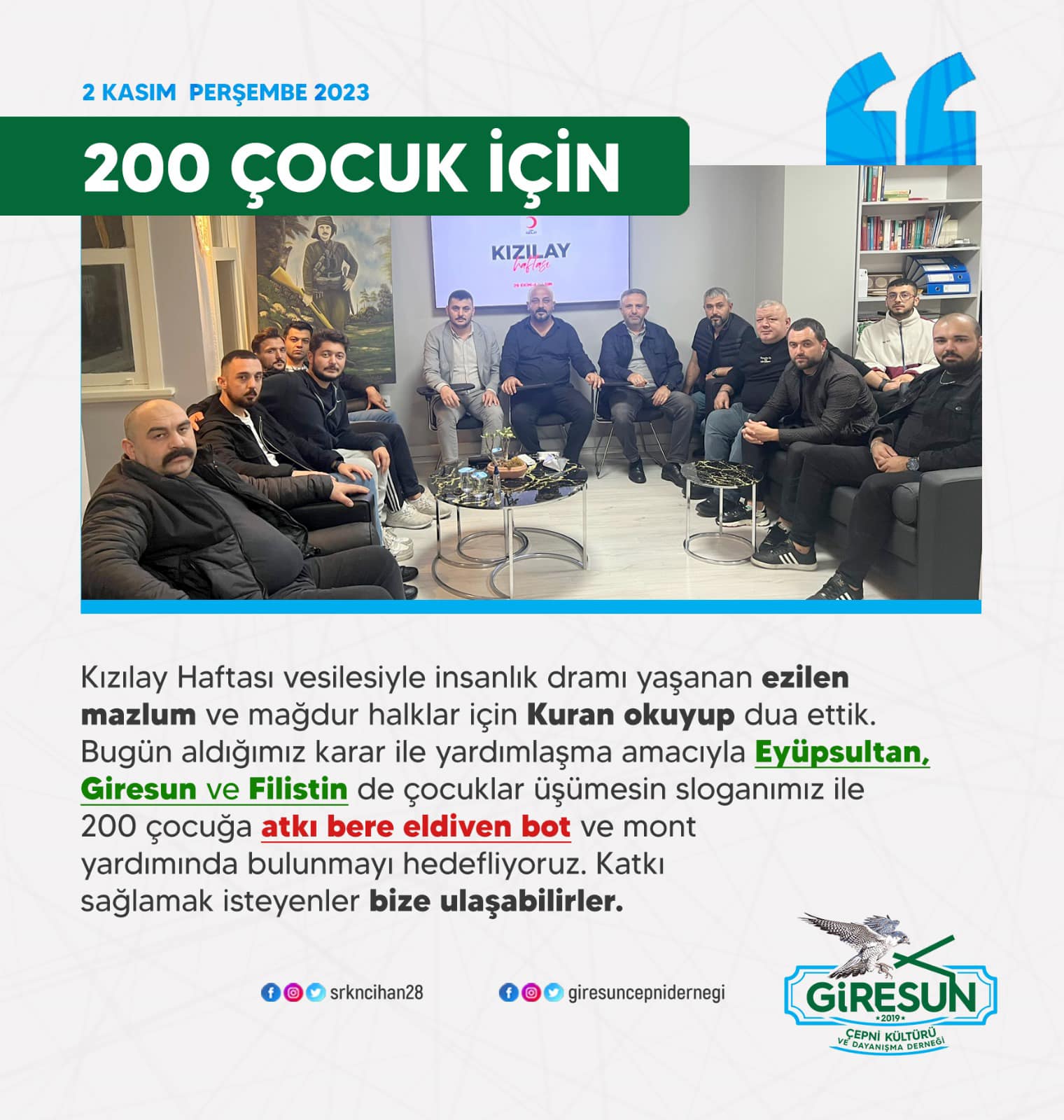 Giresun Çepni Derneği olarak her Perşembe Eyüpsultan cami meydanında bulunan merkezimizde düzenlediğimiz Kur’an-ı Kerim…