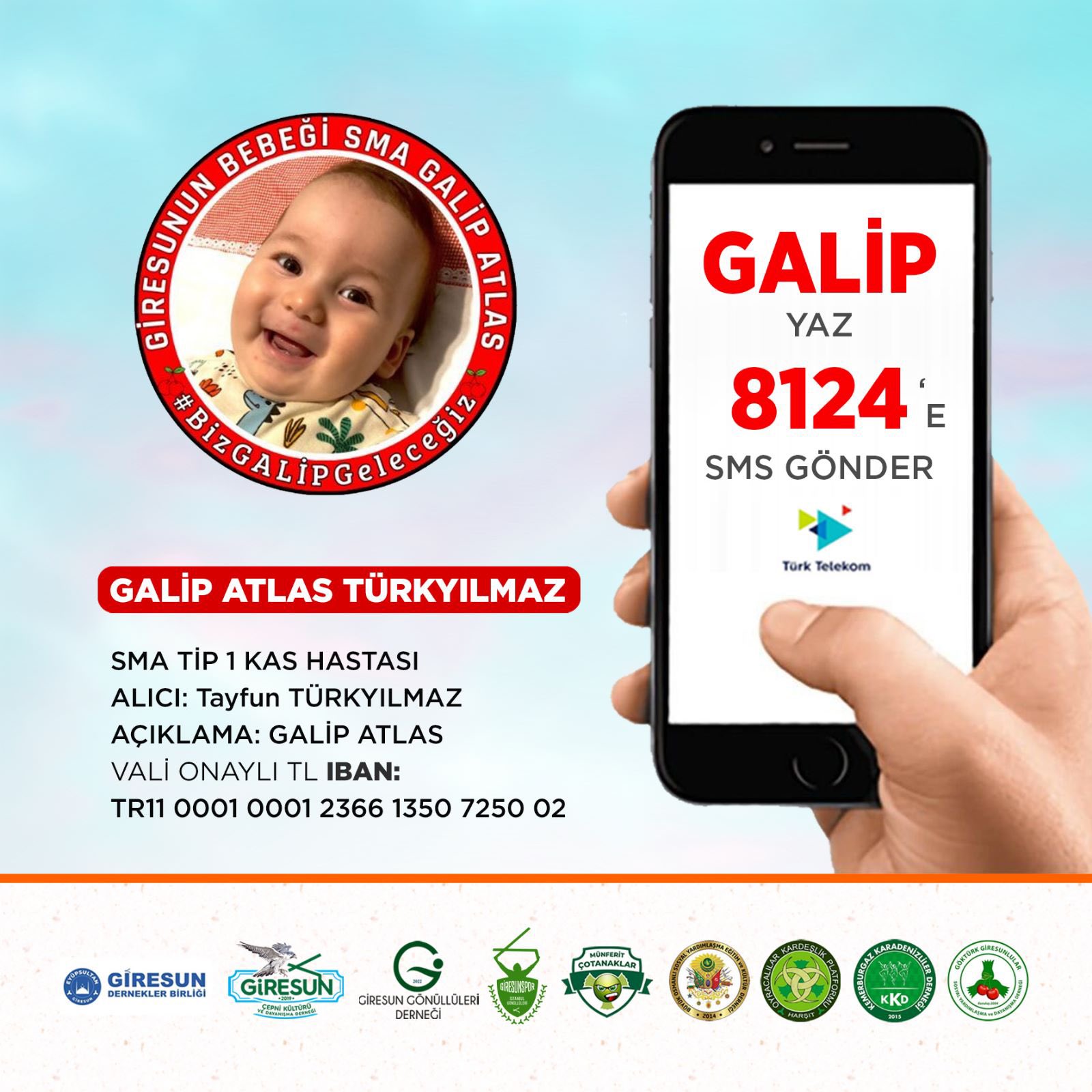 SMA Hastası Giresunlu bebeğimiz Galip Atlas Türkyılmaz’a yardımlarınızı devam ettirmenizi bekliyoruz TR11 0001 0001…
