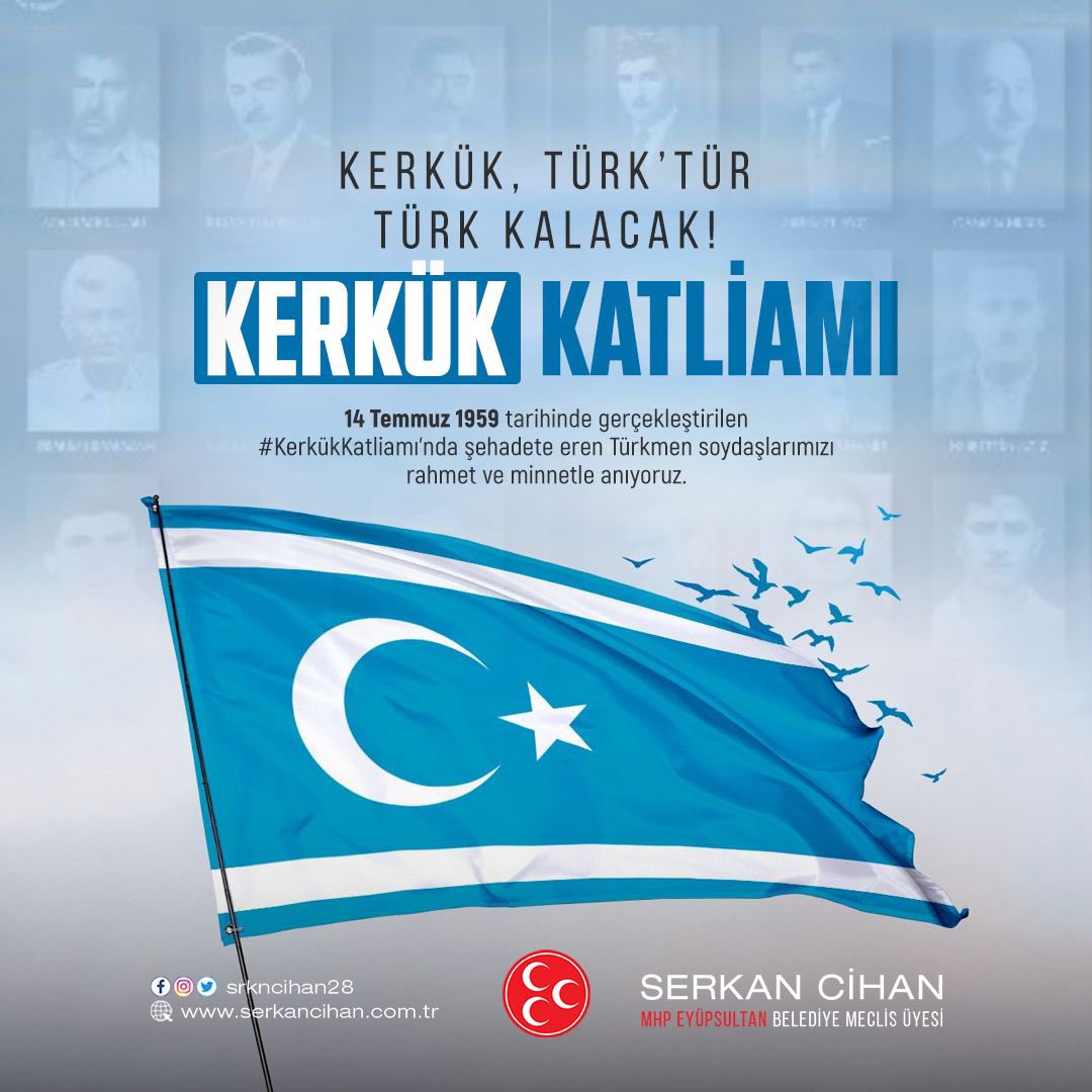 14 Temmuz 1959 Kerkük Katliamı’nda eziyet ve işkence ile şehit edilen Türkmen kardeşlerimizi rahmetle anıyoruz.