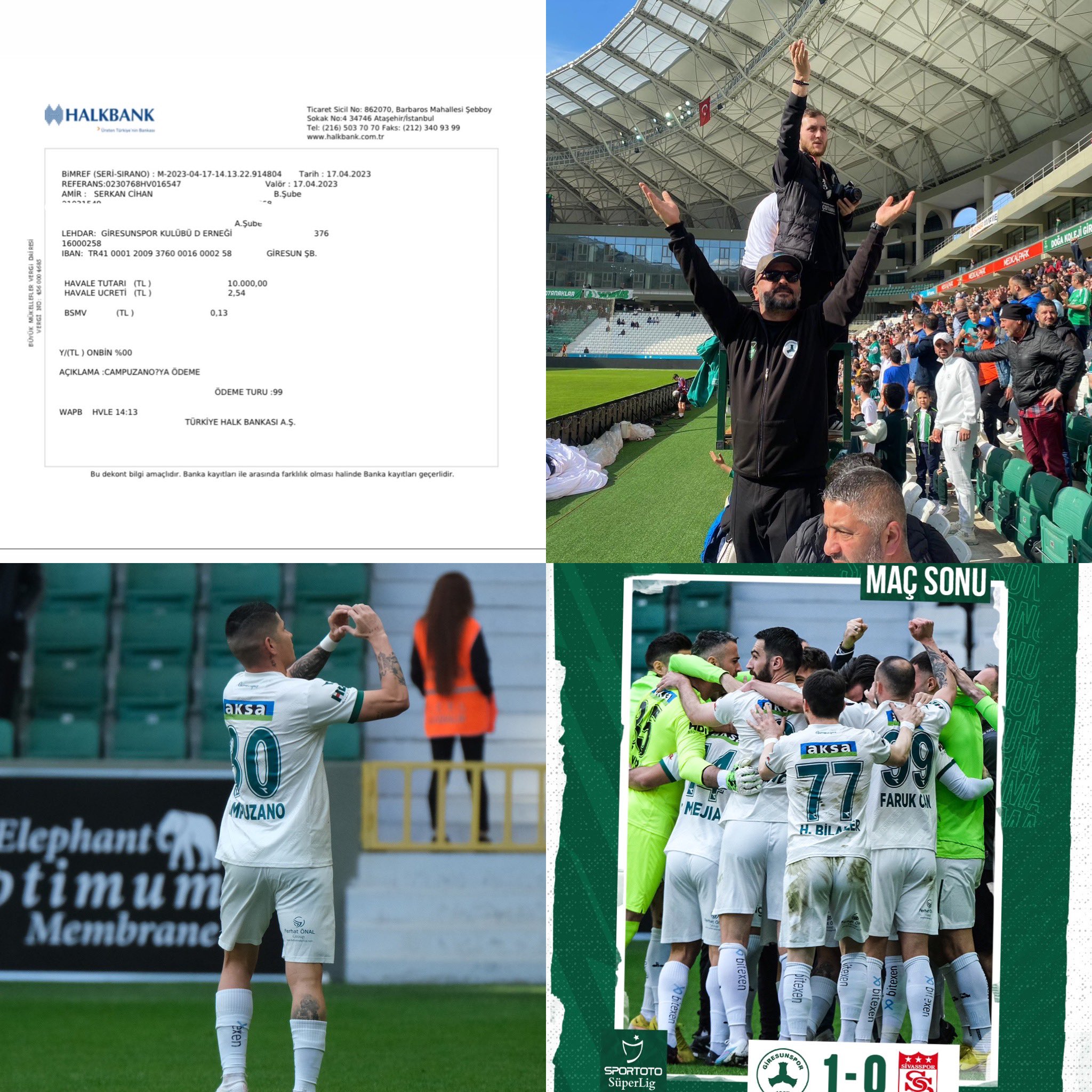 Kazanırsak her gole 10.000 TL öderim demiştim , Campuzano’ya verilmek üzere #GİRESUNSPOR kulübümüzün hesabına…