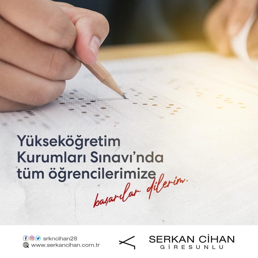 Yüksek Öğretim Kurumları Sınavına (YKS) giren tüm öğrencilerimize üstün başarılar dilerim.