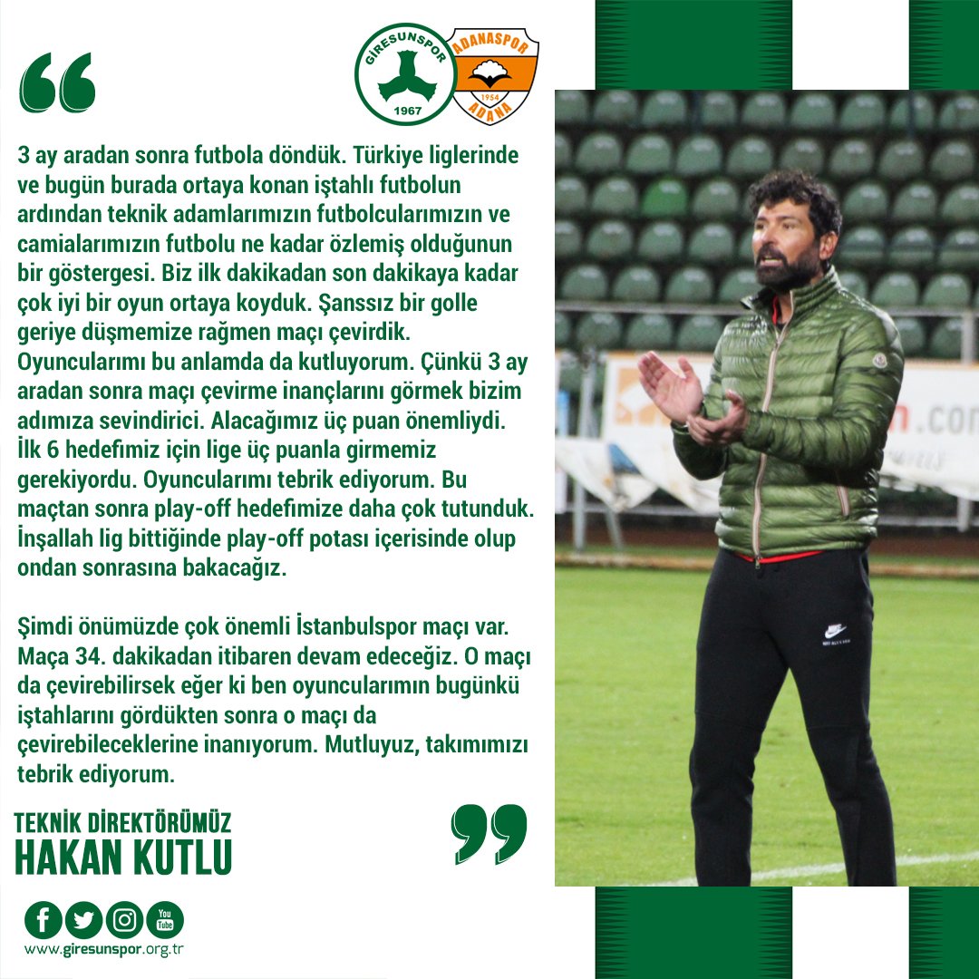 TFF 1. Lig’de 29. hafta maçında Giresunspor, Adanaspor’u 3-1 mağlup etti. Bu sonuçla birlikte…