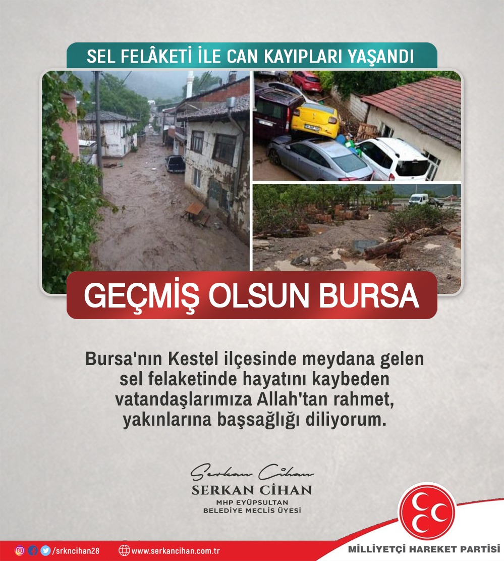 Bursa’nın Kestel ilçesinde meydana gelen sel felaketinde hayatını kaybeden vatandaşlarımıza Allah’tan rahmet, yakınlarına başsağlığı…