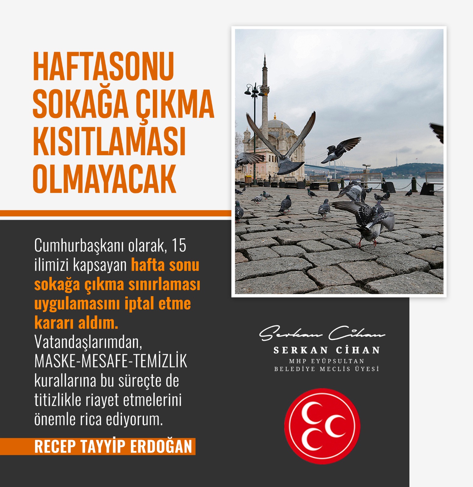 Cumhurbaşkanı olarak, 15 ilimizi kapsayan hafta sonu sokağa çıkma sınırlaması uygulamasını iptal etme kararı…