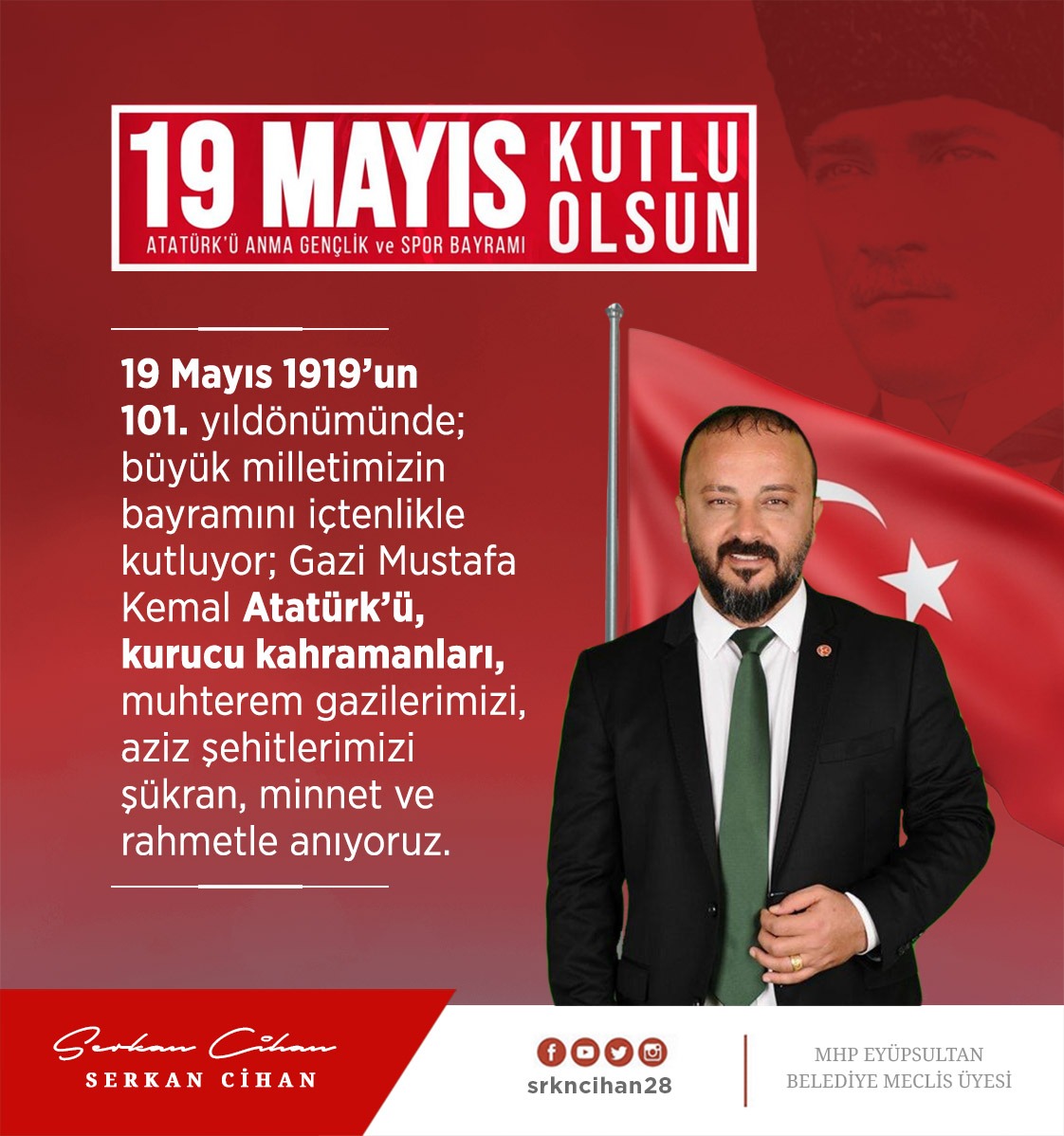 19 Mayıs 1919’un 101. yıldönümünde; büyük milletimizin bayramını içtenlikle kutluyor; Gazi Mustafa Kemal Atatürk’ü,…
