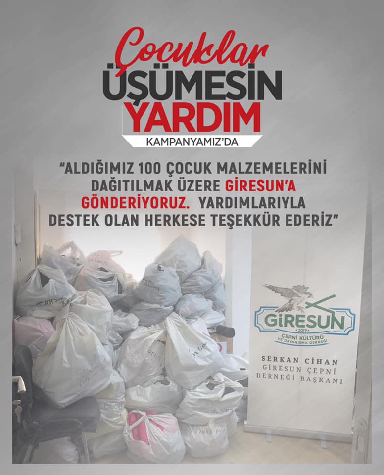 Giresun Çepni Derneği Çocuklar Üşümesin yardım kampanyamızda toplanan malzemelerin bir bölümünü Giresun’da kardeşlerimize dağıttık…