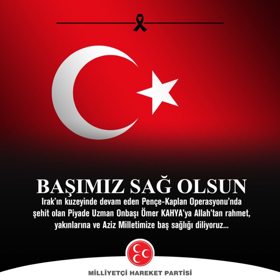 Irak’ın kuzeyinde devam eden Pençe-Kaplan Operasyonu’nda şehit olan Piyade Uzman Onbaşı Ömer KAHYA’ya Allah’tan rahmet, yakınlarına ve Aziz Milletimize baş sağlığı diliyoruz…
