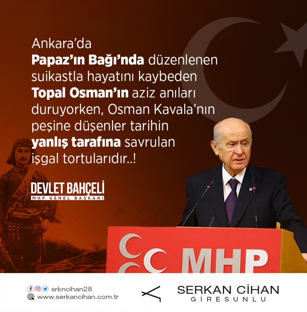 Ankara’da Papaz’ın Bağı’nda düzenlenen suikastla hayatını kaybeden Topal Osman’ın aziz anıları duruyorken, Osman Kavala’nın peşine düşenler tarihin yanlış tarafına savrulan işgal tortularıdır.