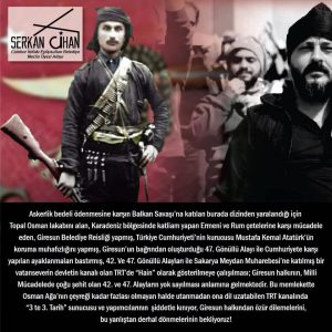 Askerlik bedeli ödenmesine karşın Balkan Savaşı’na katılan, burada dizinden yaralandığı için Topal Osman lakabını alan, Karadeniz bölgesinde katliam yapan Ermeni ve Rum çetelerine karşı mücadele eden, Giresun Belediye Reisliği yapmış, Türkiye Cumhuriyeti’nin kurucusu Mustafa Kemal Atatürk’ün koruma muhafızlığını yapmış, Giresun’un bağrından oluşturduğu 47. Gönüllü Alayı ile Cumhuriyete karşı yapılan ayaklanmaları bastırmış, 42. Ve 47. Gönüllü Alayları ile Sakarya Meydan Muharebesi’ne katılmış bir vatanseverin devletin kanalı olan TRT’de “Hain” olarak gösterilmeye çalışılması; Giresun halkının, Milli Mücadelede çoğu şehit olan 42. Ve 47. Alayların yok sayılması anlamına gelmektedir.