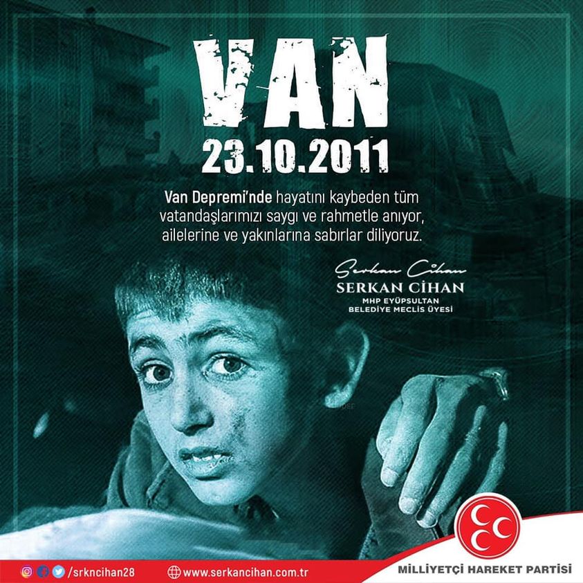 23.10.2011 tarihinde Van’da gerçekleşen depremde hayatını kaybeden vatandaşlarımızı rahmetle anıyoruz.Rabbim bir daha yaşatmasın inşallah.
